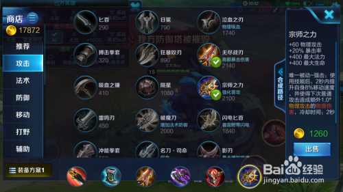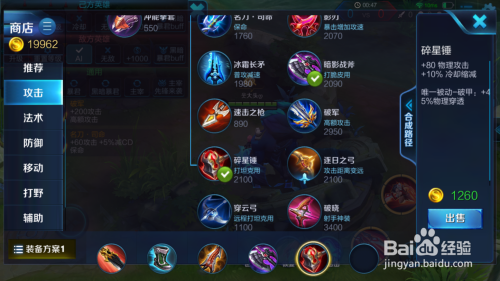 一般环境下接下来的装备就是碎星锤和破军了,若是对面有移速优势可以风筝阿珂的话,例如孙尚喷鼻,就选择宗师之力。