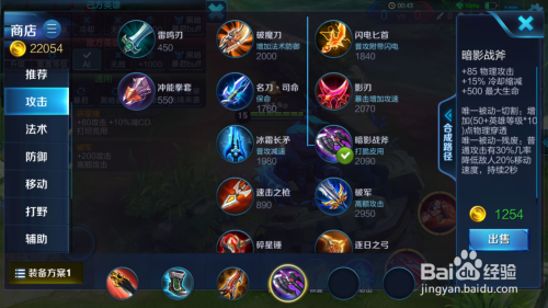 阿珂一般都是作为打野位的,所以小打野刀出门,然后进级为冷却打野刀。