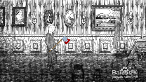节制Thomas拿着斧子往前走,房间结构没有变,最右侧仍是浴室,这关没有去 o的需要所以就不走了,让Thomas从中心的那扇门分开。