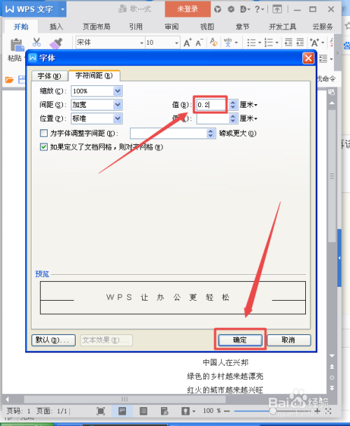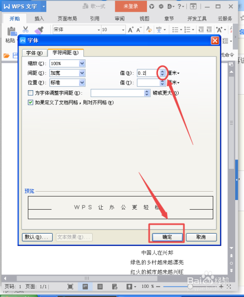 若是对间距要求很具体,好比要求0.2厘米,可以再该行“值”,后面的空白芝直接输入,然后单击“确定”