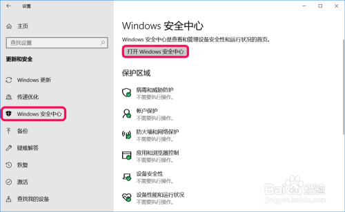在更新和平安窗口中,先点击窗口左侧的【Windows 平安中间】,在右侧窗口中点击:打开Windows 平安中间;