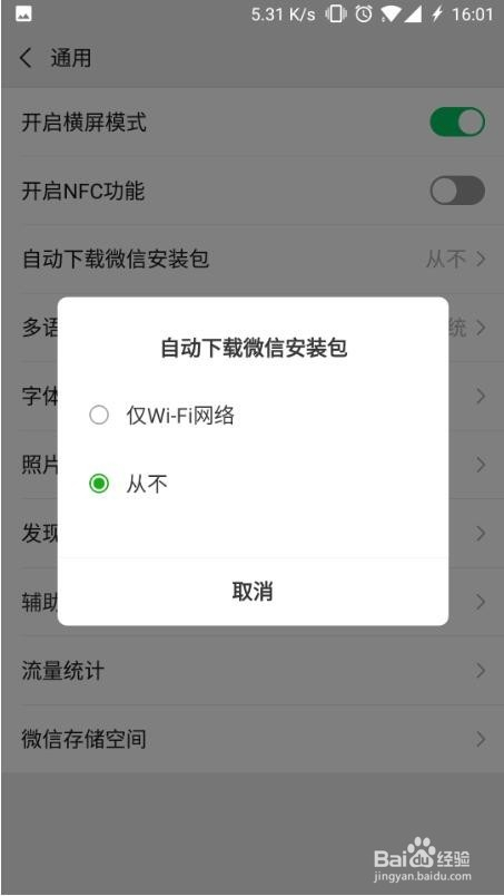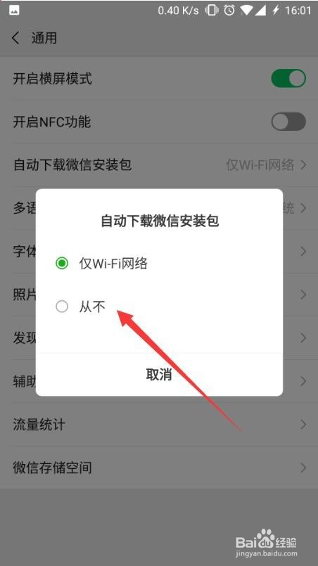 我们可以看到今朝是仅wifi收集,这里需要选择从不