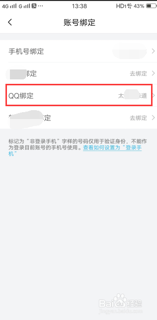 这里显示已经绑定手机号,点击QQ绑定,当前是未绑定。