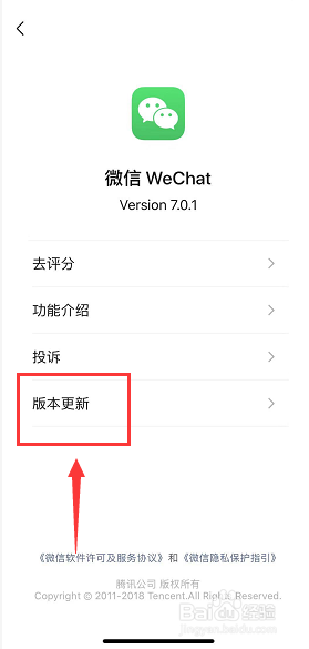 进入微信版本信息界面,点击版本更新选项卡,如下图所示