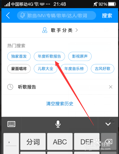 接着我们点击页面上的【年度听歌陈述】,若是找不到的话也可以经由过程搜索框搜刮