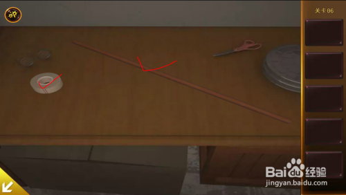 左边桌子上掏出木棍和胶布。门口取到木棍。