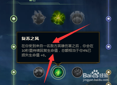 然后我们可以点出苏醒之风来帮忙瑞兹答复血量,提高瑞兹的线上续航能力。