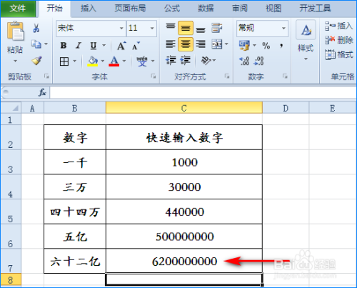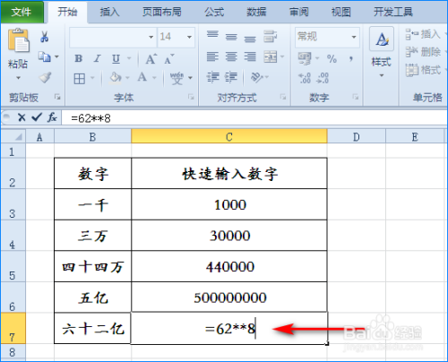 按照以上的操作方式我们可以轻松输入有良多零(0)的数字,总体而言就是:先选中单位格,再在单位格内输入一个等号”=“,接着在等号后面输入需要该数字中的非零数字,然后在非零数字后面输入两个星号”**“,最后在星号后面输入该数字中所含零(0)的个数,再按一下回车键,即可获得良多零的数字哦!如图所示: