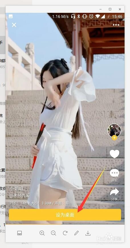 点击进入这个动态视频后,点击下面的下载设置桌面按钮
