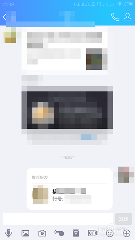 第六步,点击发送之后,就可以看到本身和A的聊天记实中有发送B QQ资料的记实。然后A就可以经由过程点击该动静快速加B为老友