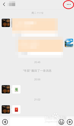 进入和他的聊天,选择右上角的3个点。