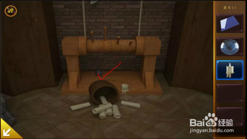 中心拱门下面,把木棍插入架子上,按照光盘中的位置提醒,扭转木棍,拿到球和蜡烛。把下面的推倒,拿到另一个球。