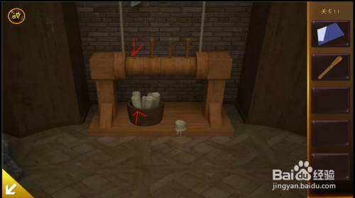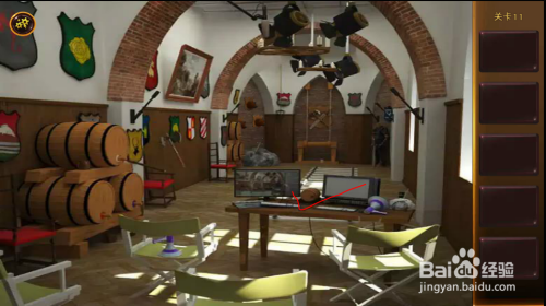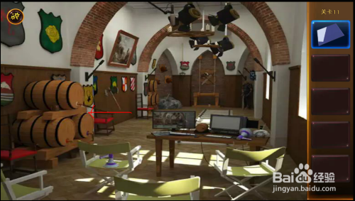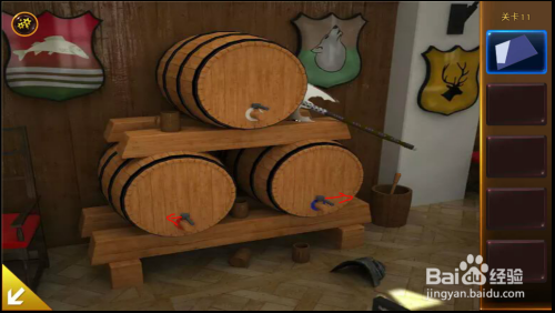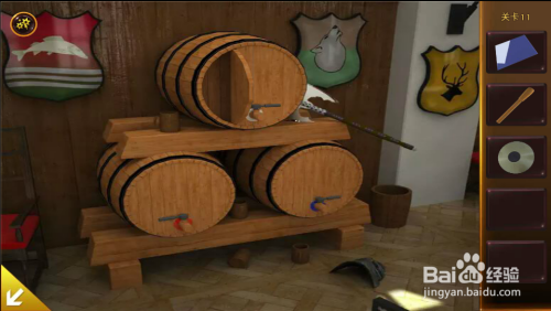 盔甲处,拿到卡片,看到木桶塞子位置提醒。