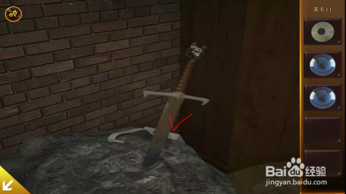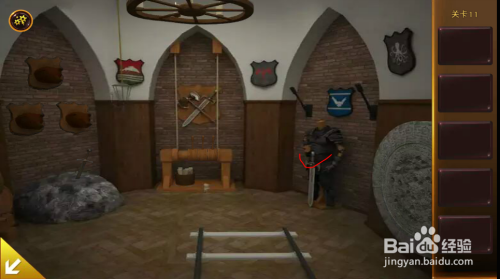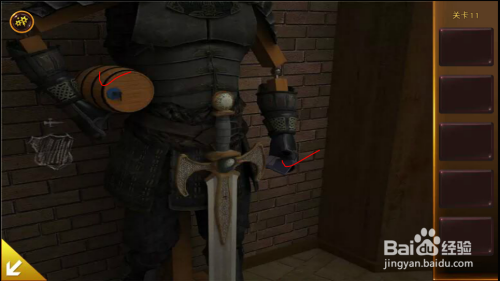 拨出左边拱门下面插着的剑。用剑刺破壁画,获得图形和数字提醒。