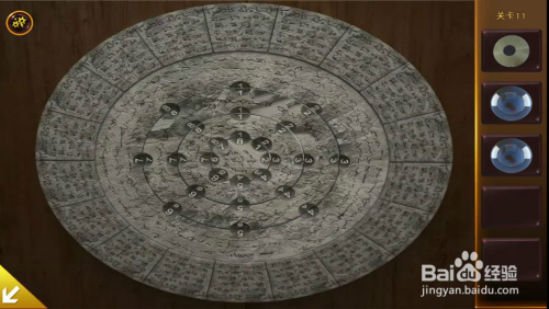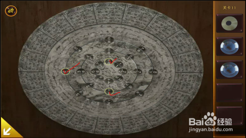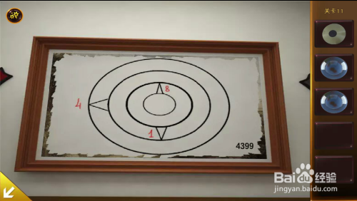 按照提醒扭转拱门右边的转盘,将三个球放在1、4、8三个数字位置。转盘打开,顺遂逃走出去。