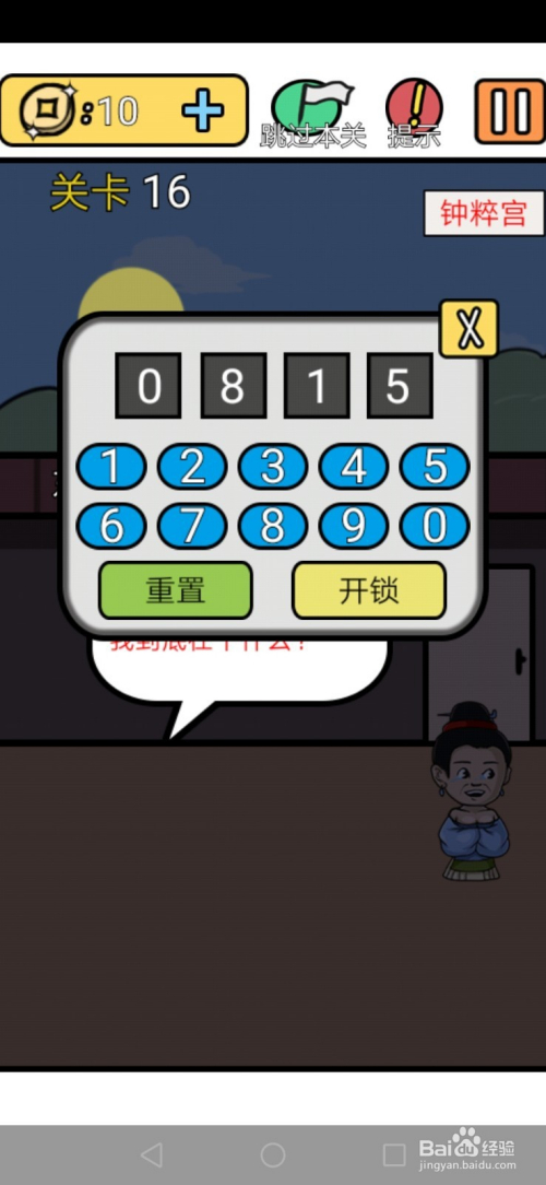第16关小翠走到门的位置,然后点击门输入0815点击开锁就过关了。