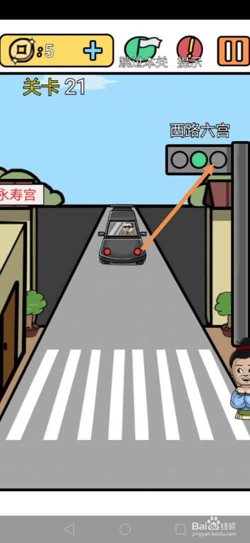 第21关将车上的红灯拖动到红绿灯上,然后让小翠走到门的位置就过关了。