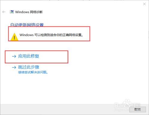 2.4 在Windows 进行自我修复的时辰,它会检测本身是否可以修复这些问题。若是可以修复如图所示,利用鼠标左键单击“应用此修复”。若是不克不及修复,它会提醒出响应的收集问题。