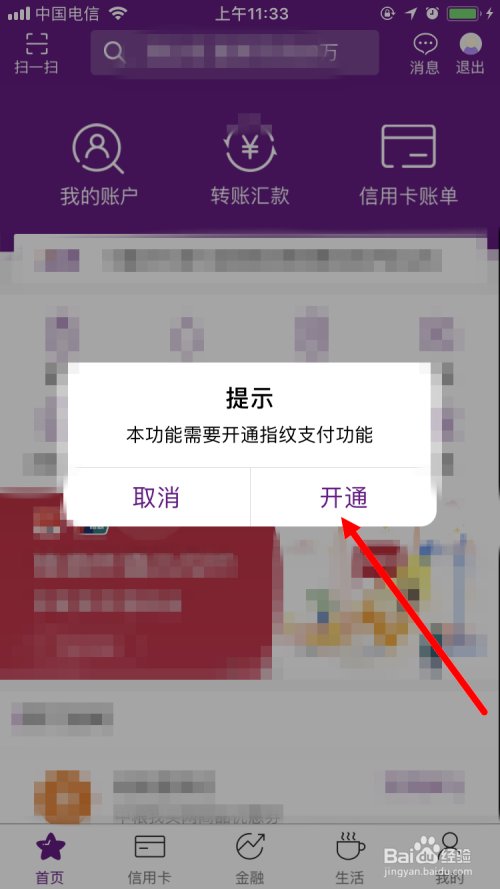 查看 付条目码 前需要先开通 指纹付出功能 。点击 开通 。