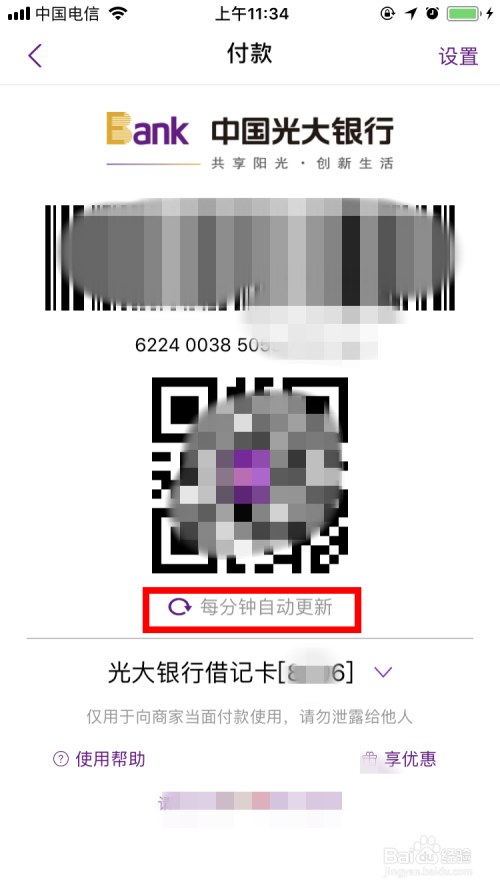 此次我们就可以看到本身的 付条目码 了。付条目码是每分钟主动更新一次。