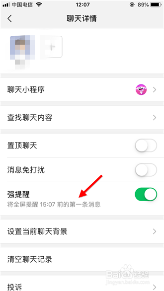 进入对话框中点击界面右上角的...图标,进入后开启强提醒功能。