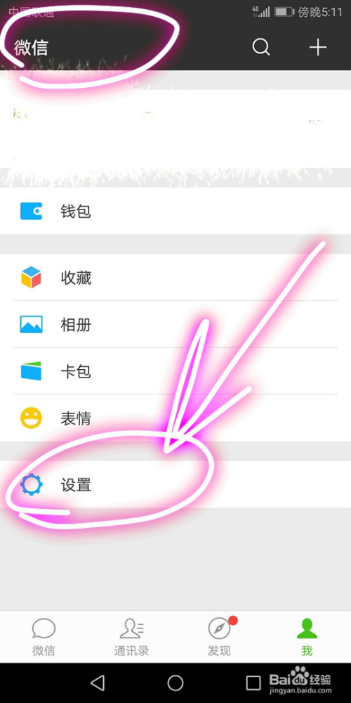 这时,我们就会看到微信小我账号信息页面,在该页面中选择设置选项;