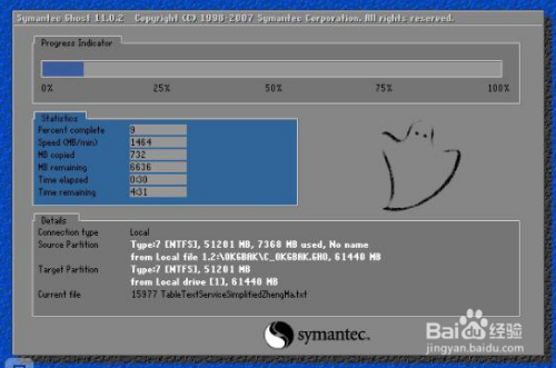 接着你会看到图一图二的进度条,正在备份系统,期待百分之百,那么即可备份完当作了本身的系统,建造为了一个gho系统的文件。