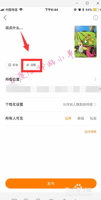 如许话题就添加当作功了,我们可以再说点什么后发布。