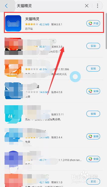 若是你不肯意扫描,直接到app商铺,搜刮天猫精灵,如下图所示