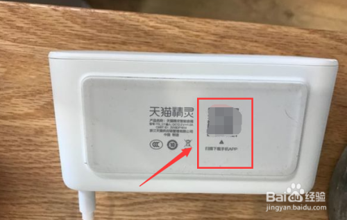 拿到天猫精灵,首先拿手机扫描天猫精灵底部的二维码,如下图所示