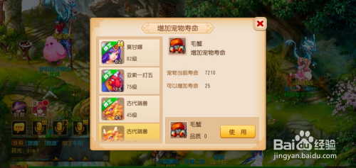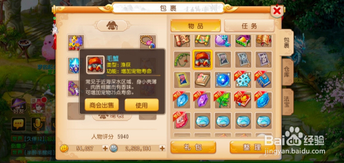背包的页面,点击毛蟹,毛蟹是垂钓可以获得的。
