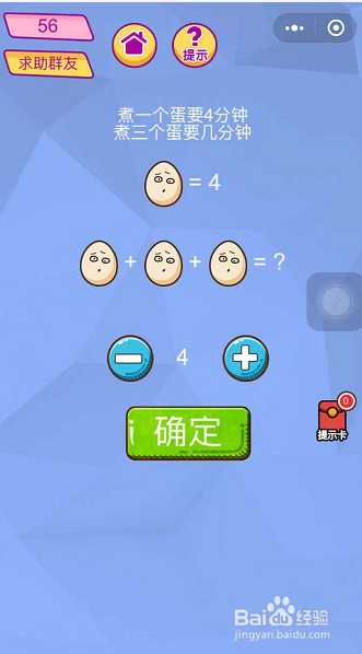 第56关:住一个鸡蛋需要四分钟,煮三个鸡蛋需要多久呢?提醒:也就这点套路了
