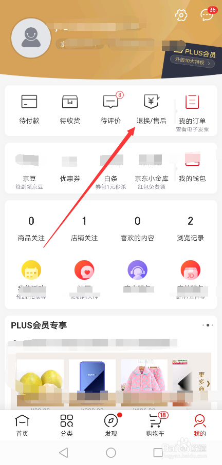 在京东我的界面里直接点击【退换/售后】,如下图所示。