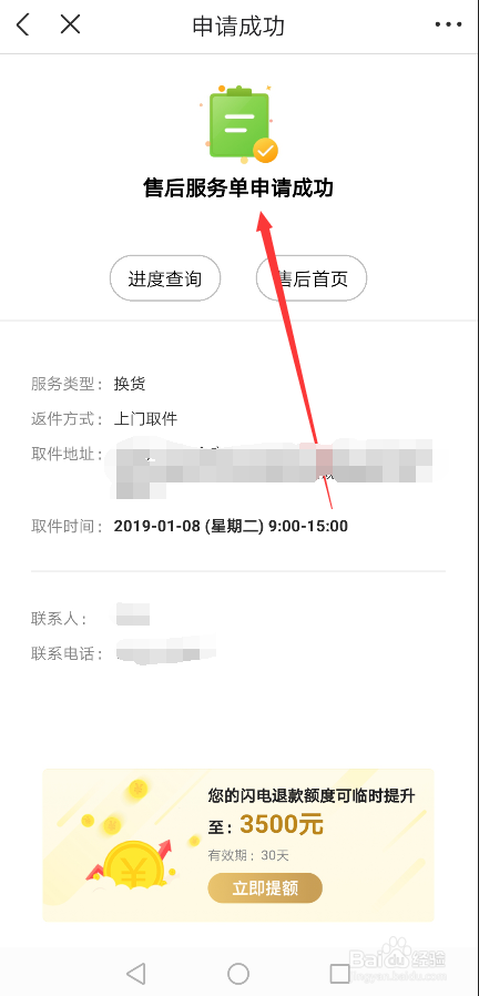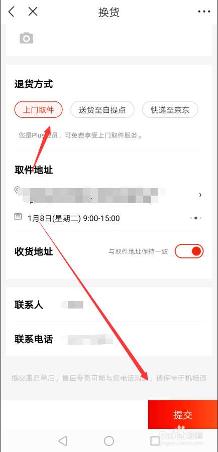 点击确定后进入京东换货界面,然后把换货的内容填写下,在选择退换的体例,然后点击提交,如下图所示。