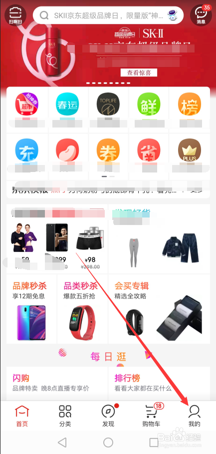 打开京东手机APP并登岸,然后直接点击底部导航【我的】,如下图所示。