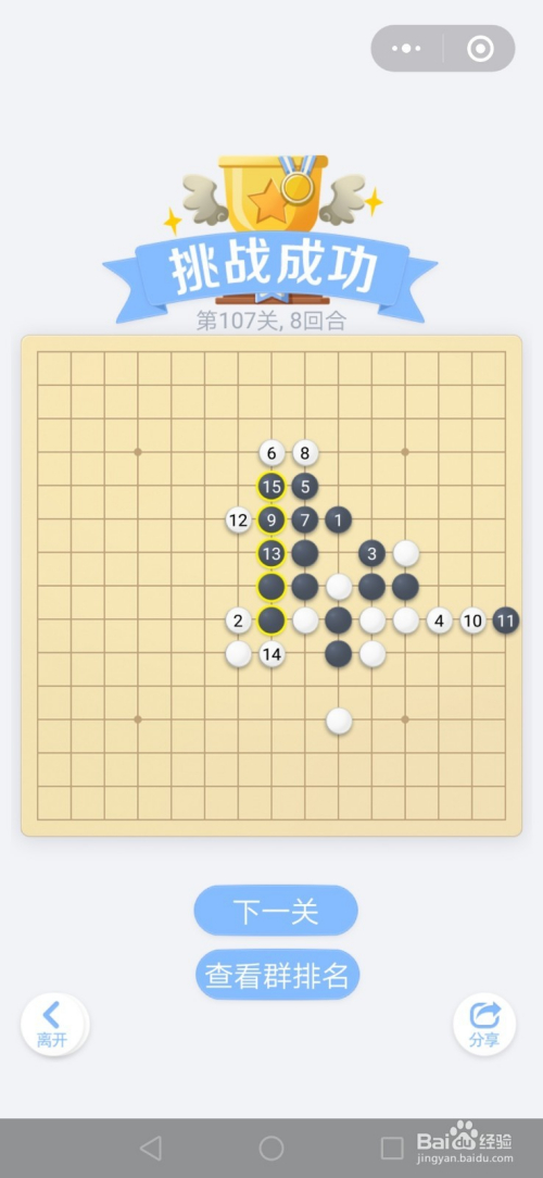 第107关按照下图中黑棋上的数字挨次下棋就能过关。