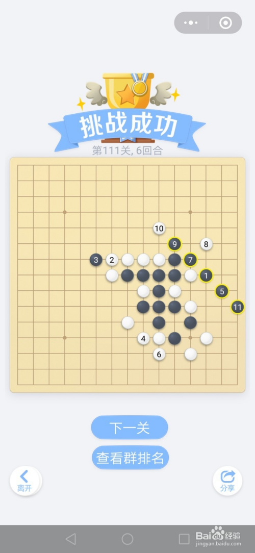 第111关按照下图中黑棋上的数字挨次下棋就能过关。
