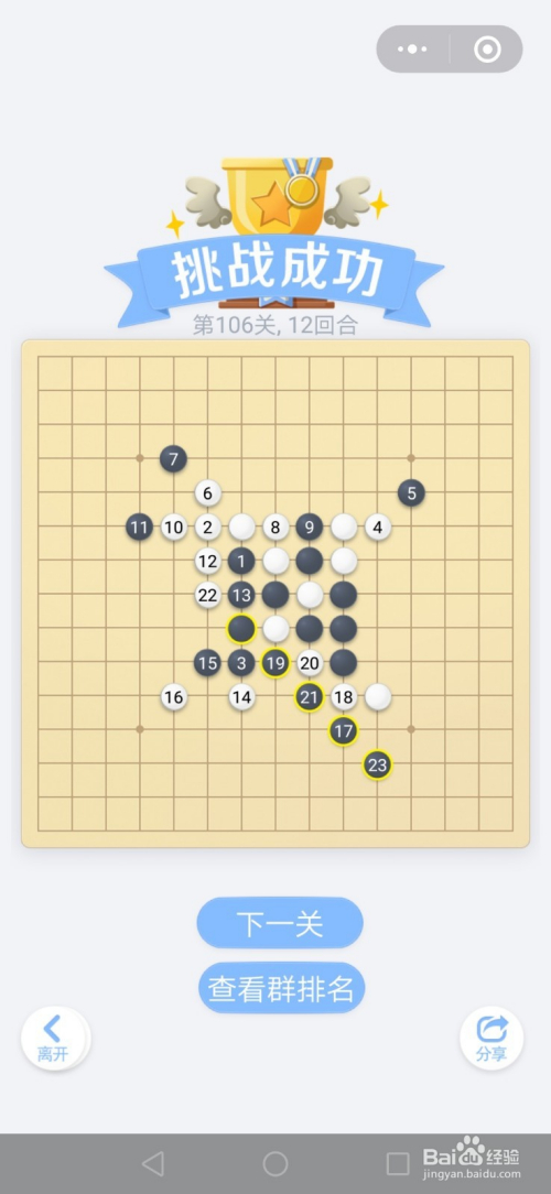 第106关按照下图中黑棋上的数字挨次下棋就能过关。