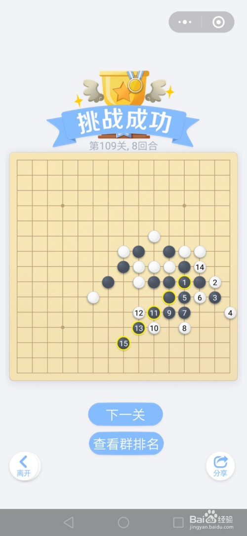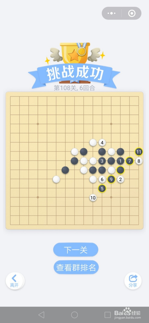 第108关按照下图中黑棋上的数字挨次下棋就能过关。