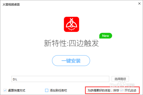 然后是否需要,开机启动,我选择的是,开机后它会主动启动,改换视频桌面