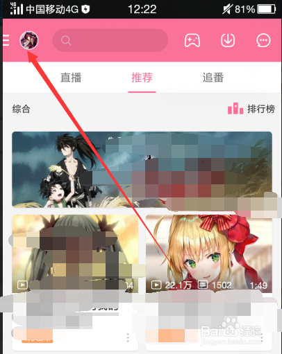 首先打开哔哩哔哩点击页面左上方的B站头像
