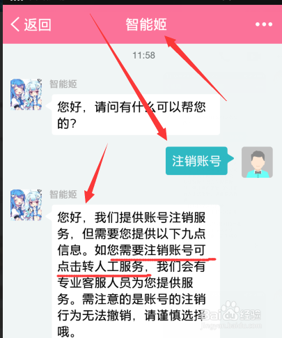 此刻我们输入并发送【刊出账号】给客服,它会主动答复我们一条信息,大师当真阅读