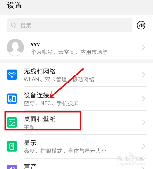 华为mate20锁屏杂志恢复第二步:接着,在设置页面中,找到“桌面和壁纸”选项,这里面可以桌面显示的相关内容进行设置。