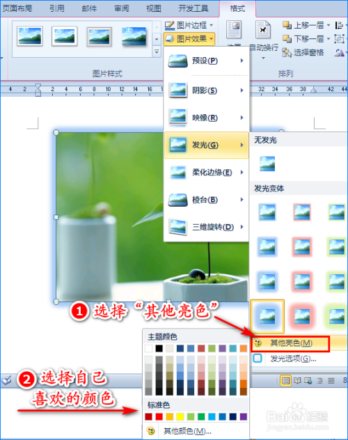 接着我们在扩展项中选择“发光”,然后在其扩展项“发光变体”下方选择适合的图片发光变体样式。样式确定后,我们选中的图片就自带发光体啦,会标的目的周围发光哦!如图所示: