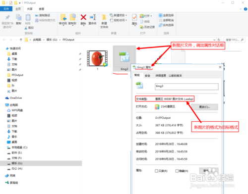 下图就是输出文件夹里的新文件,打开图片属性对话框,可以查看图片属性。到这里整个将图片格局转换当作Webp格局的操作流程就介绍完了。