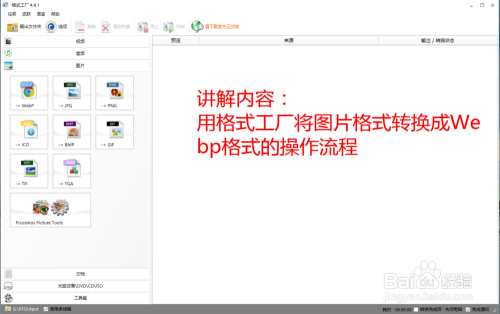 格局工场软件具有图片格局转换功能,下面就介绍一下将图片格局转换当作Webp的操作流程。