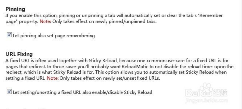Pinning和URL Fixing栏目中,可经由过程勾选或打消这两个中的复选框来,起头或封闭“固定选项卡设置页面记忆”、“固定链接利用粘性重载”功能。