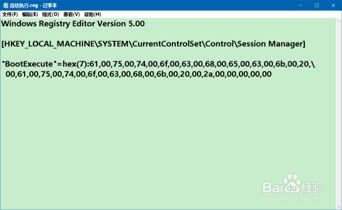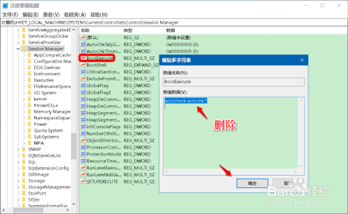 方式二:直接进入注册表编纂器窗口,删除 BootExecute 的数值数据。