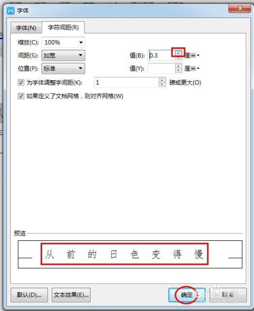 第四步:按照预览设置字符间距值,设置完当作后单击“确定”按钮。