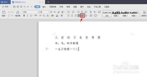 第一步:打开需要设置字间距的wps文档,单击“分离对齐”按钮。